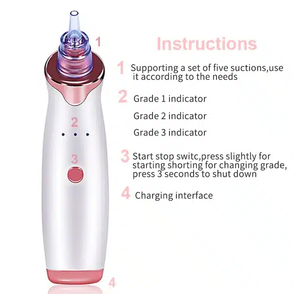 Strong suction, suction power is adjustable, effectively suck out the nose blackhead and acne. The suction power is greater than the traditional blackhead suction machine.